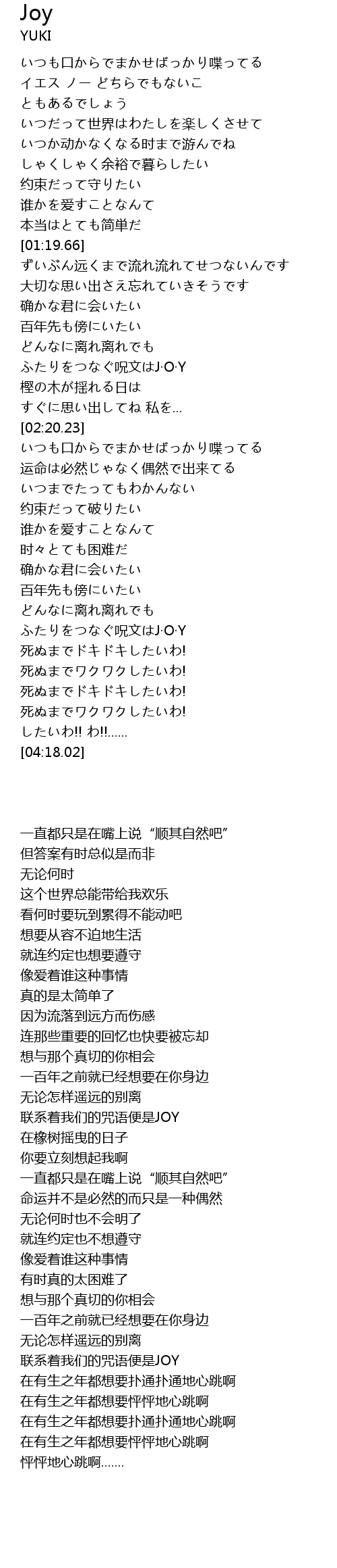 | [01:55.16] | ふたりをつなぐ呪文はJ·O·Y |