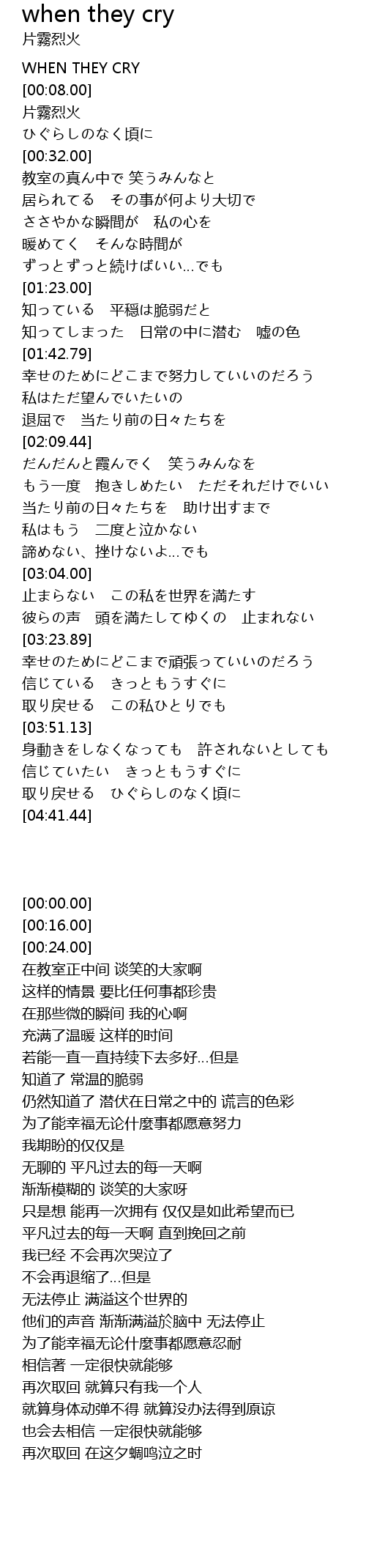 | [00:00.00] | WHEN THEY CRY |