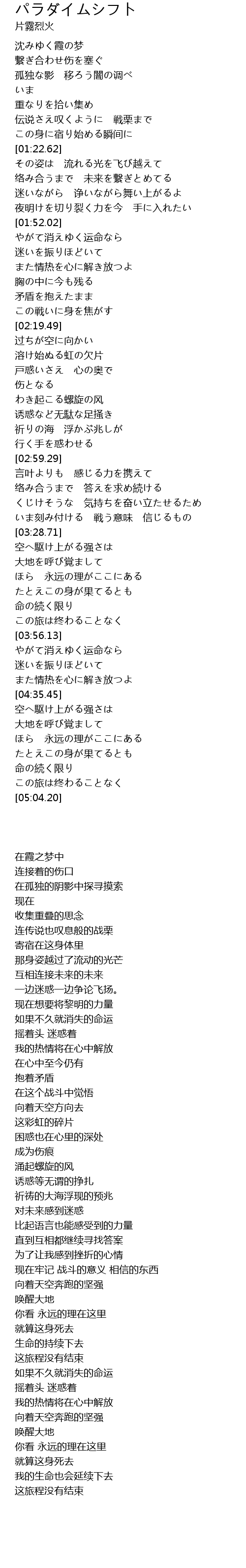 | [01:42.45] | 夜明けを切り裂く力を今 手に入れたい |