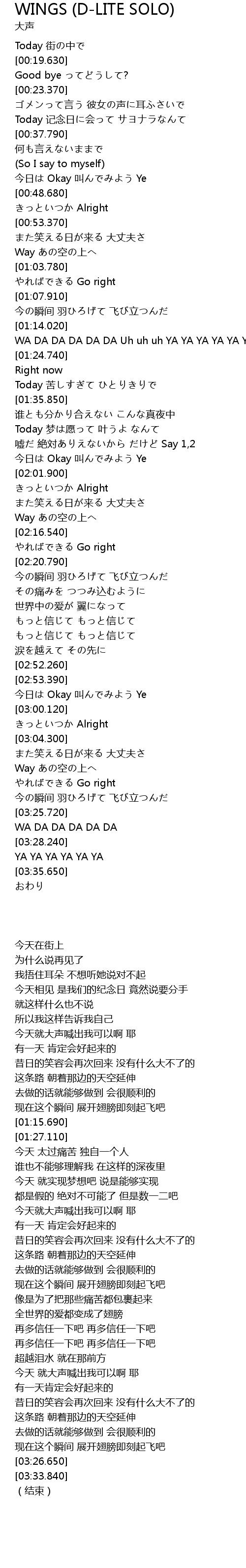| [03:19.650] | 现在这个瞬间 展开翅膀即刻起飞吧 |