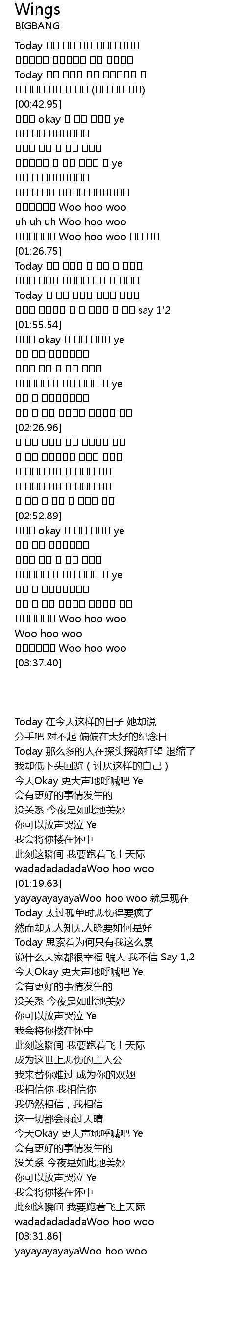 | [01:41.92] | Today 思索着为何只有我这么累 |