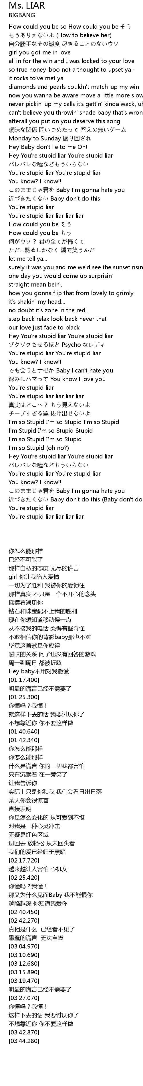 | [03:19.470] | Hey You' re stupid liar You' re stupid liar |