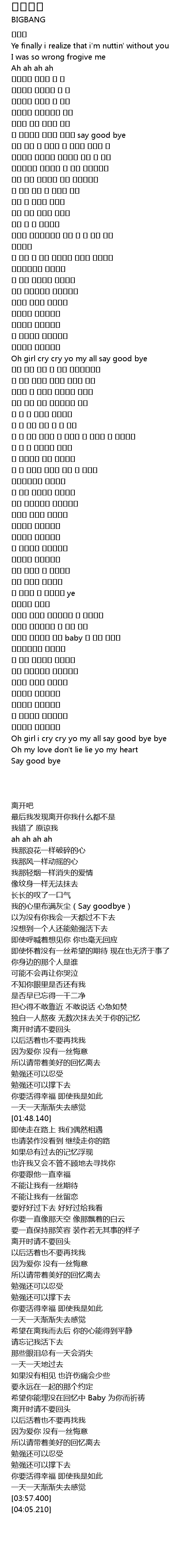 | [01:48.140] | Oh girl cry cry yo my all say good bye |
