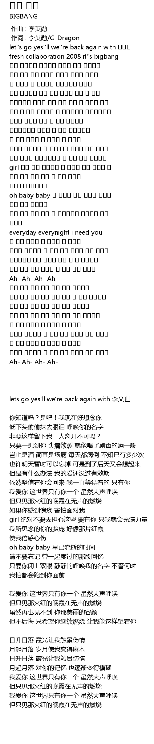 | [00:01.00] | 作词 : 李英勋/G-Dragon |