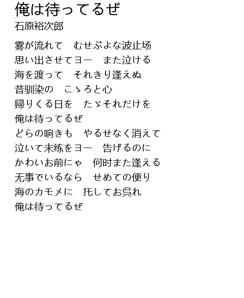 | 歌曲 | 俺は待ってるぜ |