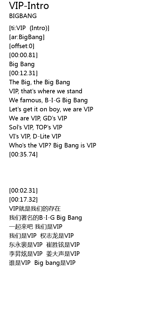 | [00:33.50] | Who's the VIP? Big Bang is VIP |