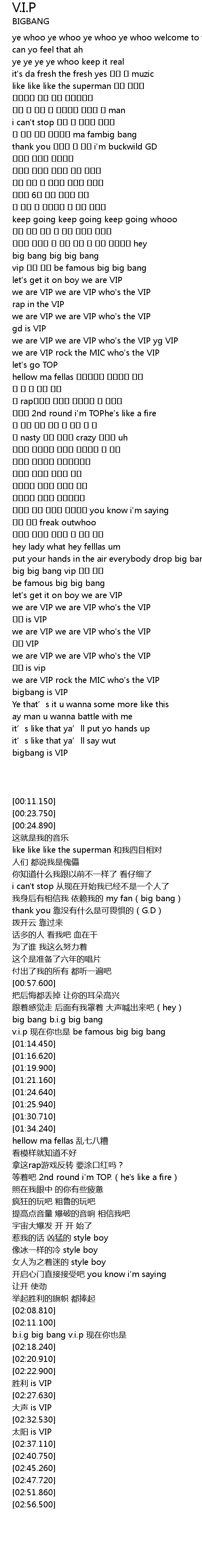 | [01:09.730] | v.i.p 现在你也是 be famous big big bang |