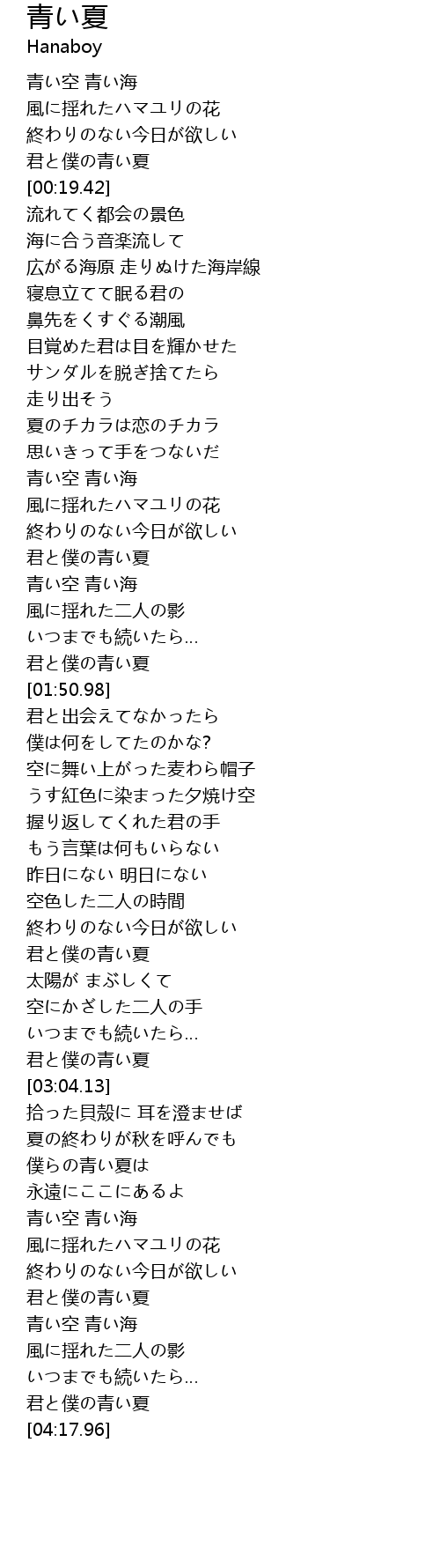| [04:06.77] | 君と僕の青い夏 |