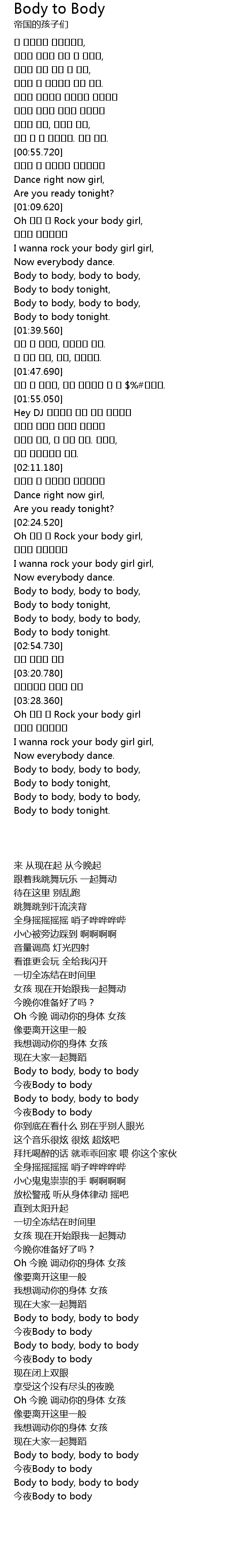 | [02:48.420] | Body to body, body to body |