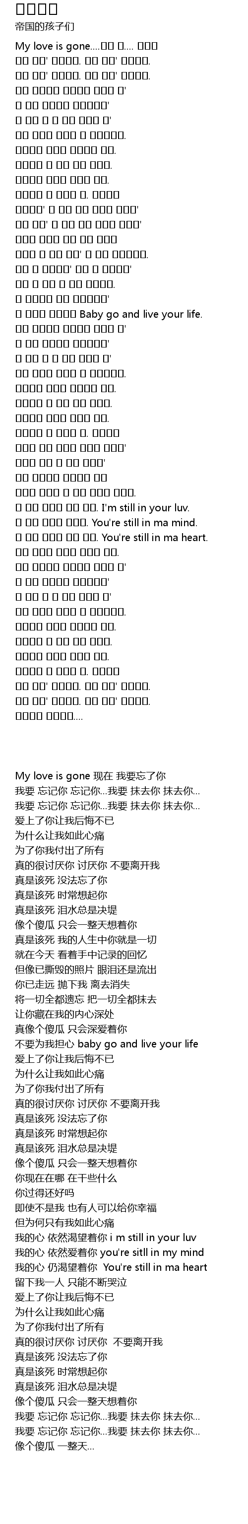 | [00:05.650] | My love is gone 现在 我要忘了你 |