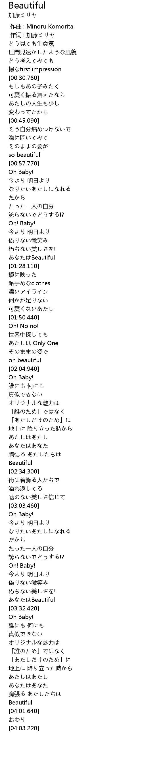 | [00:01.00] | 作词 : 加藤ミリヤ |