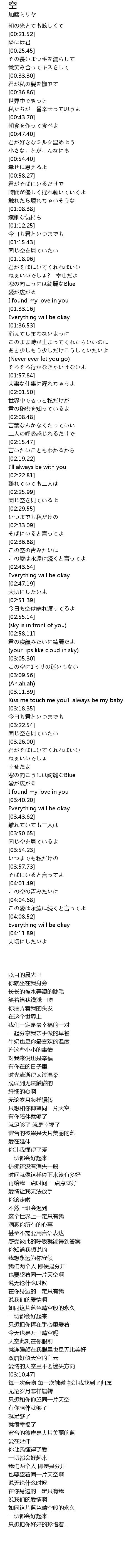 | [01:41.26] | このまま時が止まってくれたらいいのに |