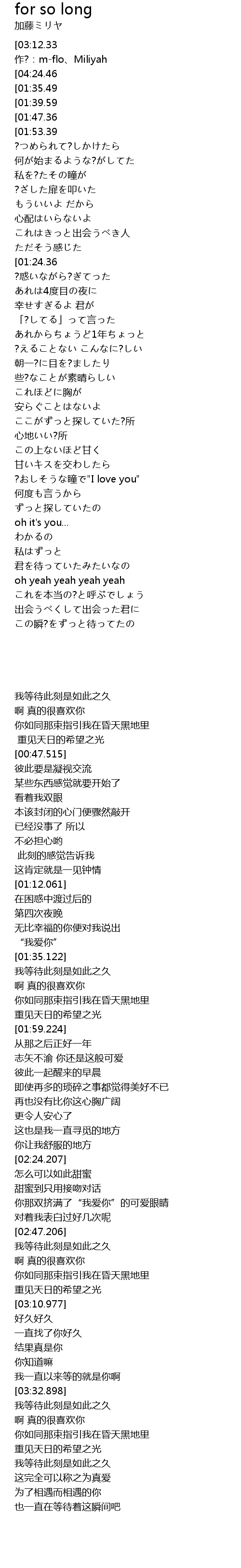 | [00:16.00][04:24.46] | 加藤ミリヤ-for so long |