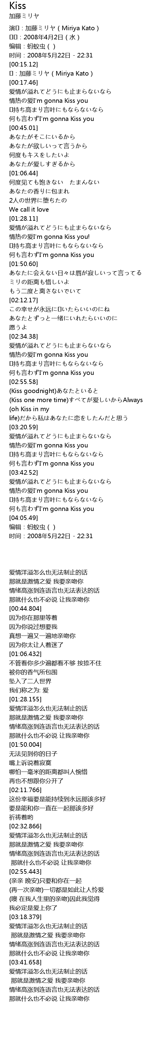 | [00:39.64] | 何も言わずI'm gonna Kiss you |