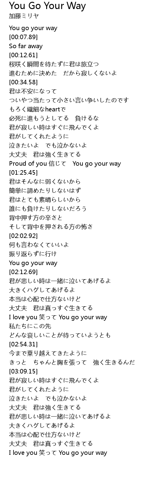 | [02:36.41] | I love you 笑って You go your way |