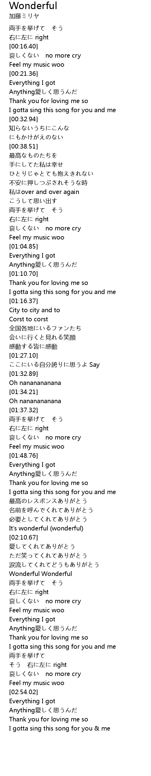 | [02:19.81] | Wonderful Wonderful |