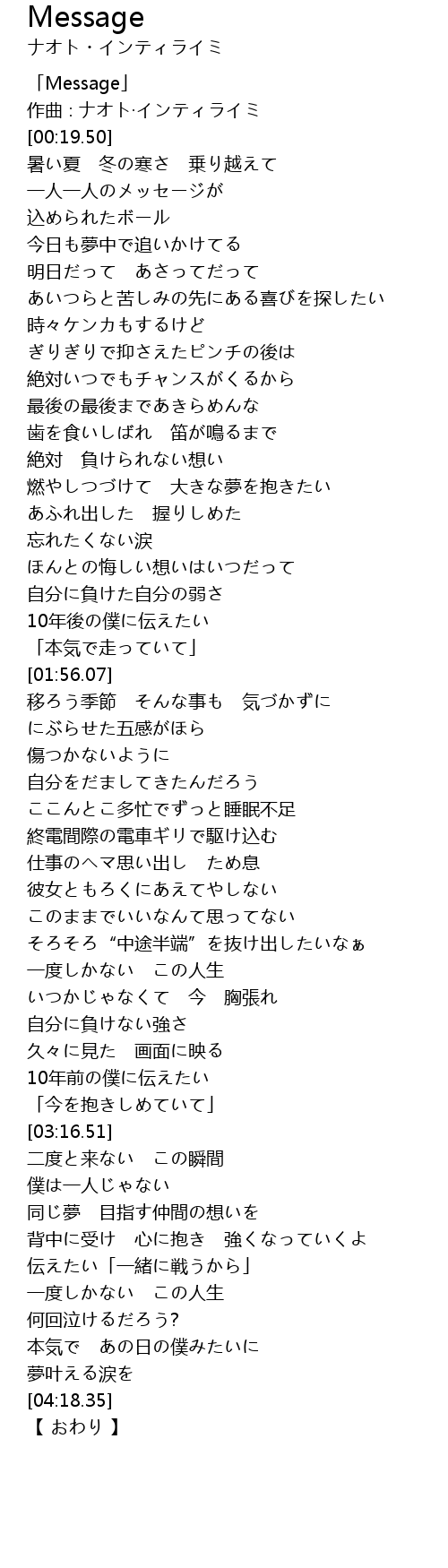 | [03:49.46] | 伝えたい「一緒に戦うから」 |