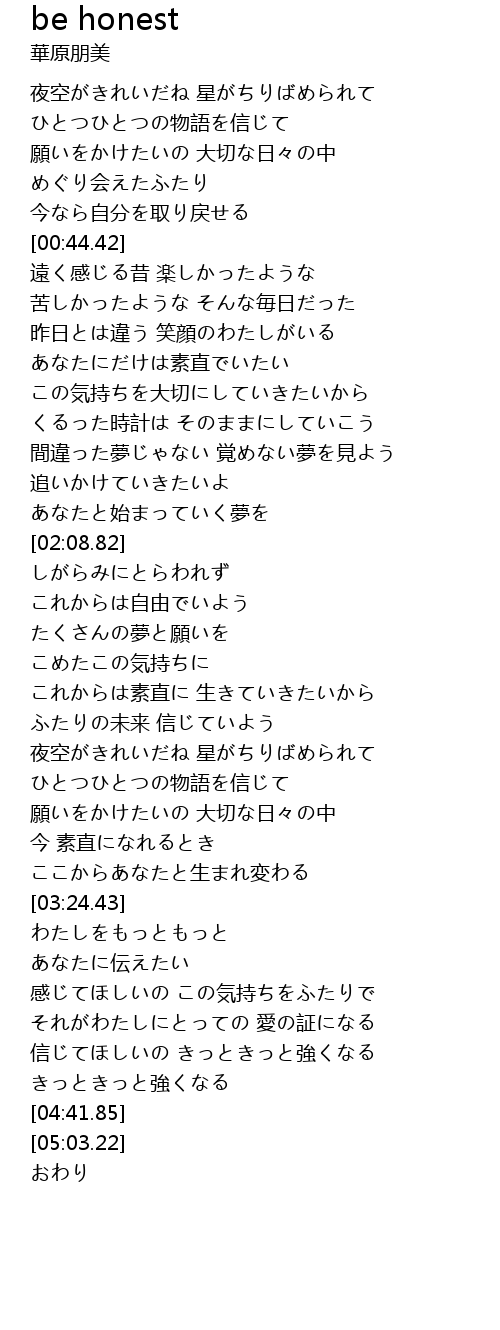 | [02:31.92] | これからは素直に 生きていきたいから |