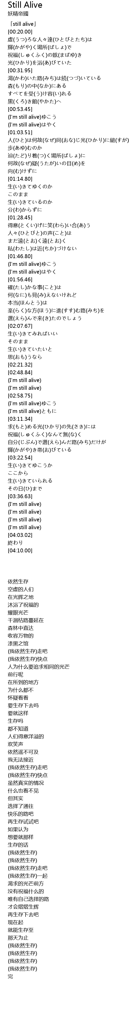 | [03:01.52] | (I'm still alive)ゆこう |
