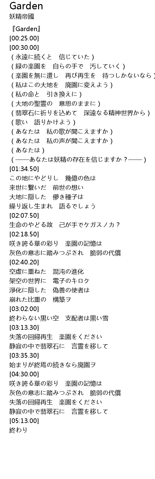 | [00:00.00] | 『Garden』 |
