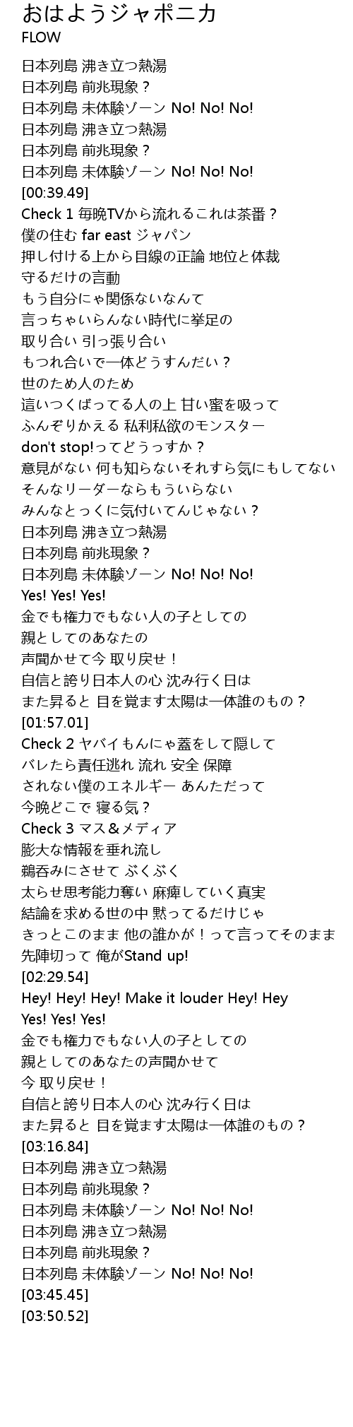| [03:39.80] | ri ben lie dao wei ti yan No! No! No! |