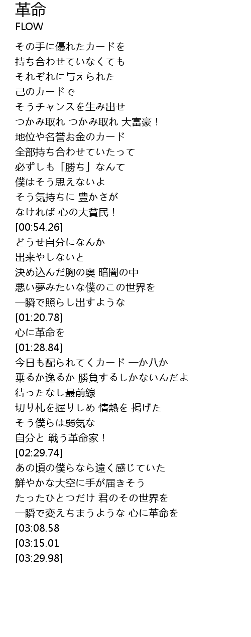 | [02:56.28] | 一瞬で変えちまうような 心に革命を |