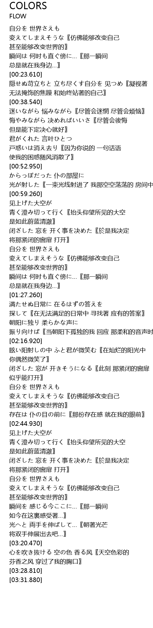 | [02:59.580] | 自分を 世界さえも 変えてしまえそうな〖仿佛能够改变自己 甚至能够改变世界的〗 |