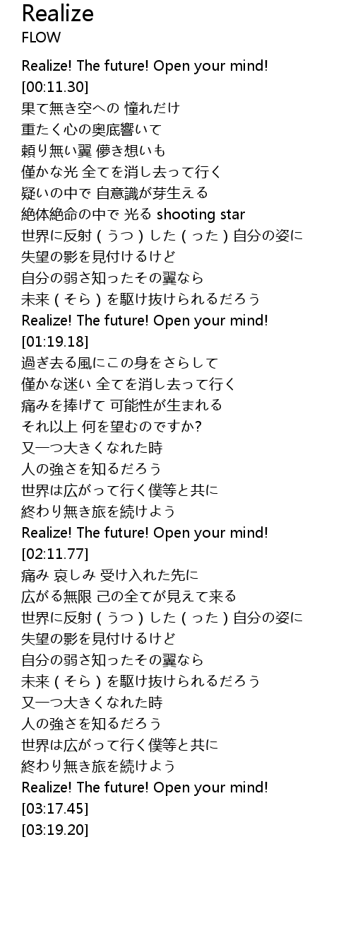 | [00:02.79] | Realize! The future! Open your mind! |