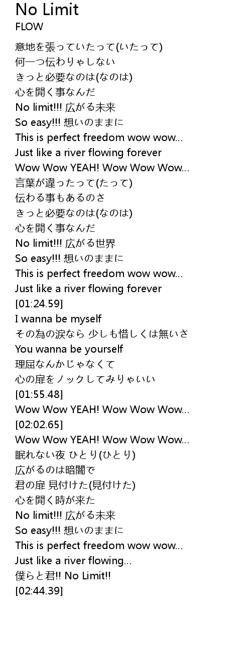 | [01:08.94] | No limit!!! guǎng shì jiè |