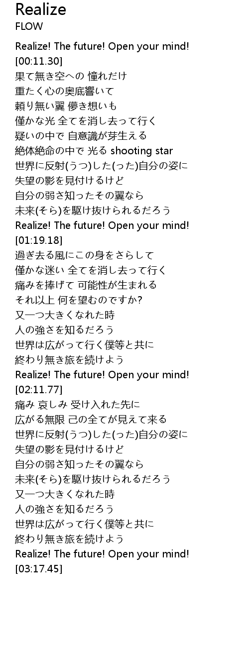 | [01:03.03] | 未来(そら)を駆け抜けられるだろう |