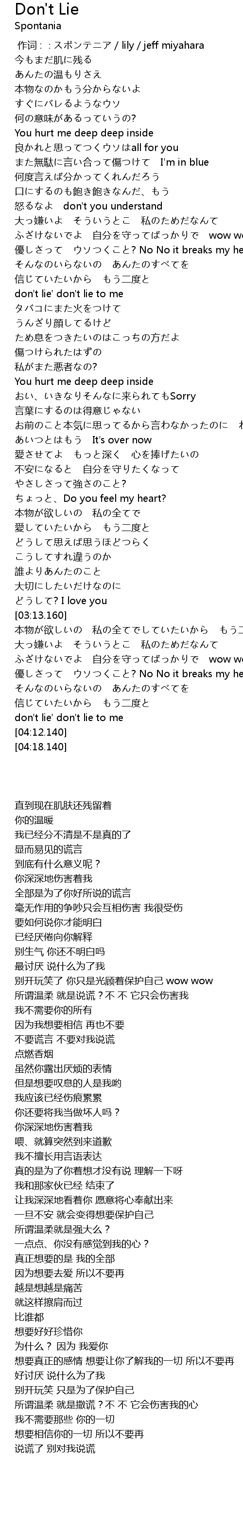| [01:34.400] | 不要谎言 不要对我说谎 |