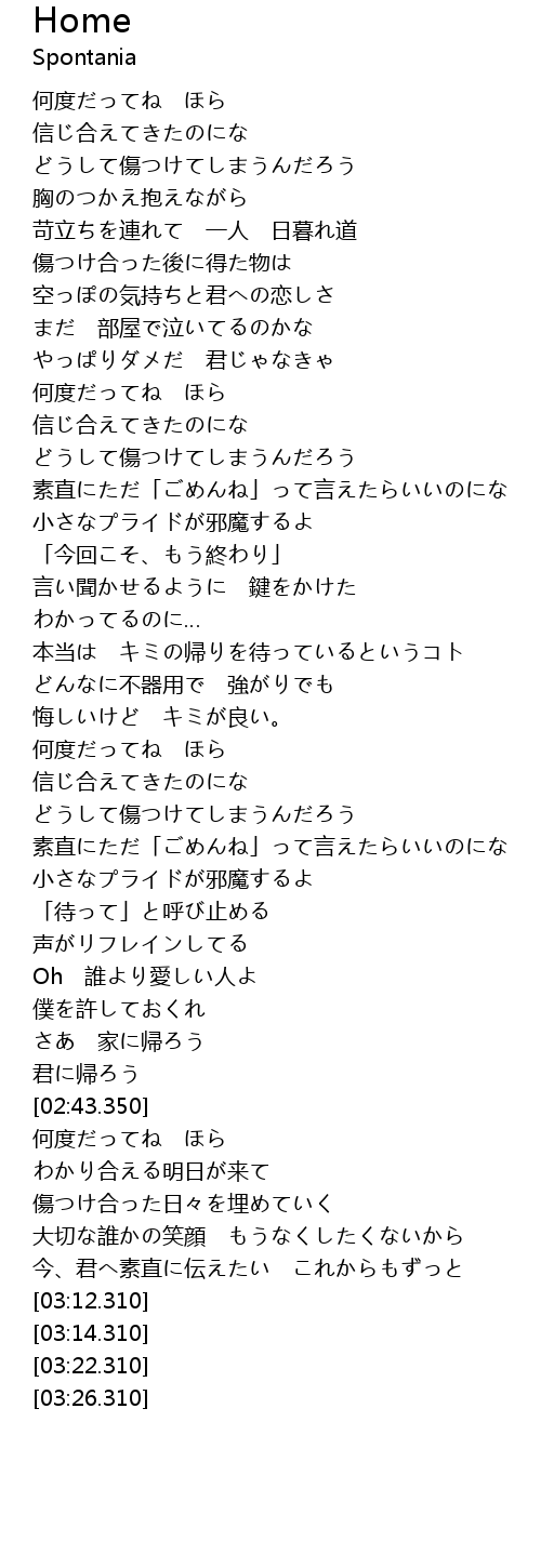 | [02:01.200] | 素直にただ「ごめんね」って言えたらいいのにな |