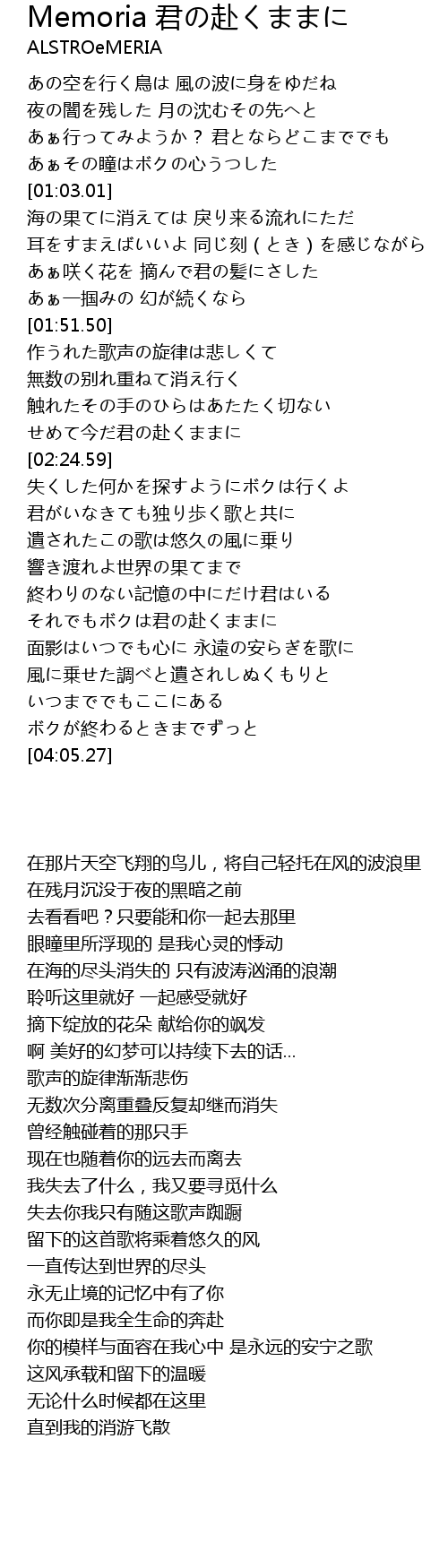 | [02:42.85] | 君がいなきても独り歩く歌と共に |