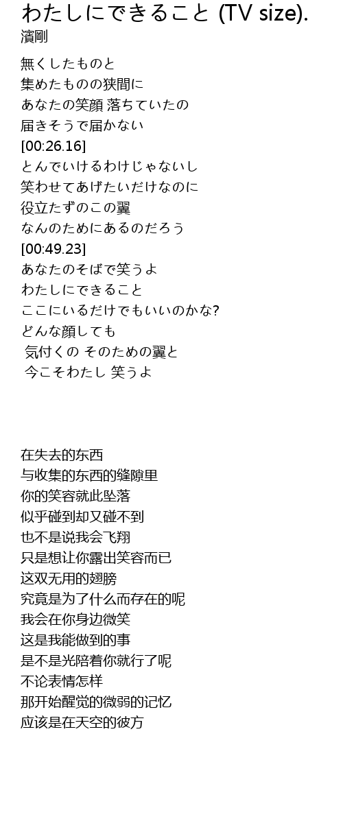 | [00:33.19] | 只是想让你露出笑容而已 |