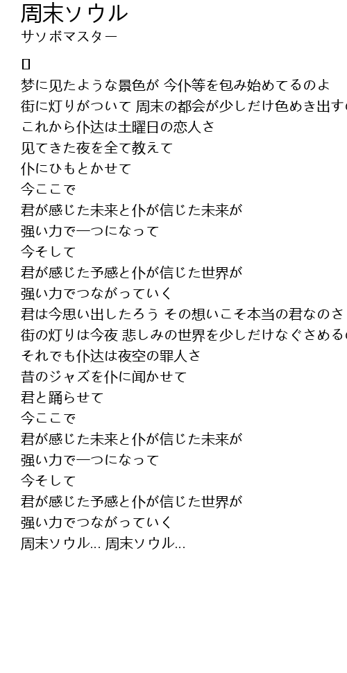 | 街に灯りがついて 周末の都会が少しだけ色めき出すのよ | |