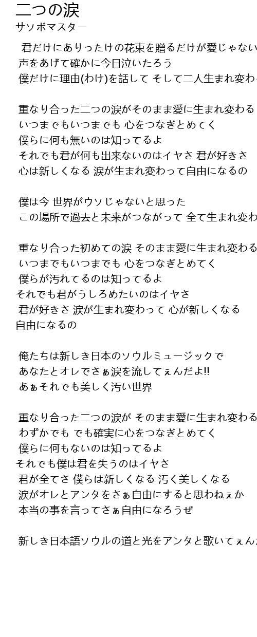 | 新しき日本語ソウルの道と光をアンタと歌いてぇんだよ |