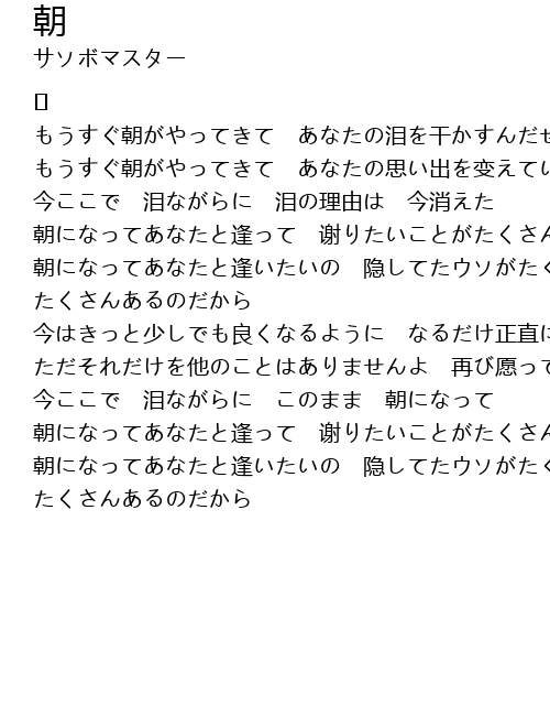 | 朝になってあなたと逢って 谢りたいことがたくさんあるのだから | |
