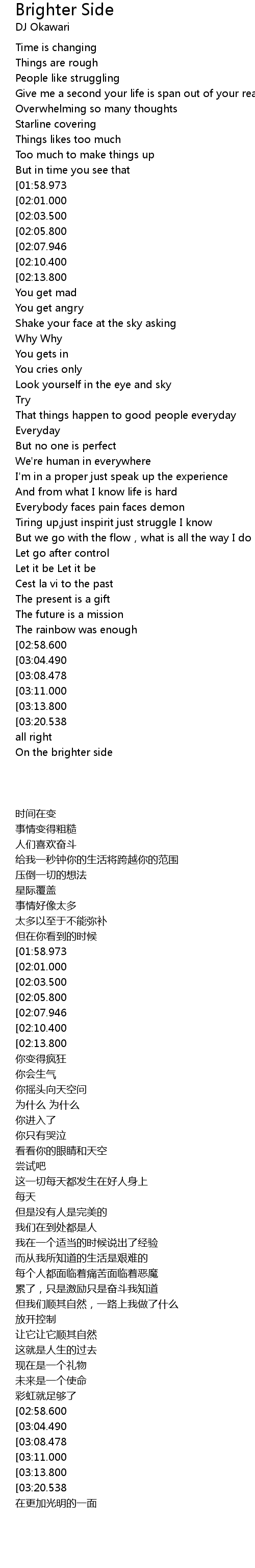 | [03:33.000] | On the brighter side |