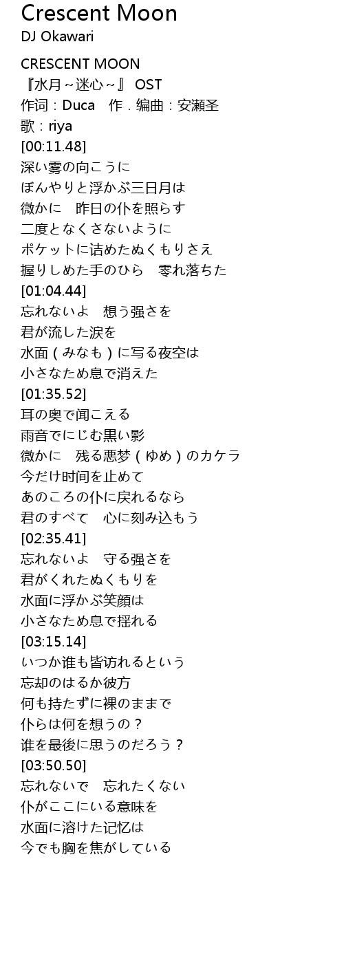| [00:18.61] | ぼんやりと浮かぶ三日月は |