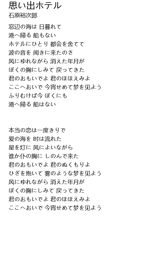 | 歌曲 | 思い出ホテル |