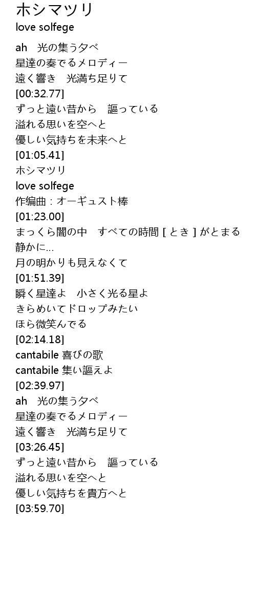| [03:16.31] | 遠く響き 光満ち足りて |
