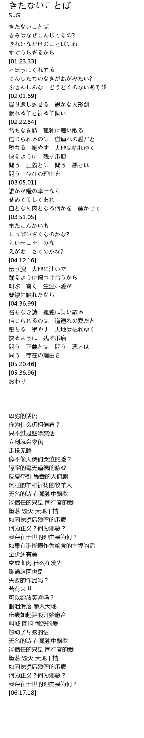 | [00:59.79] | きたないことば |