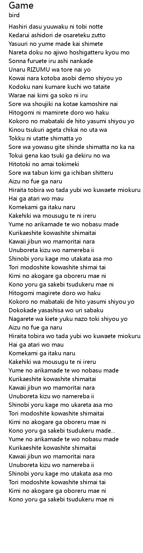 Game 歌词
