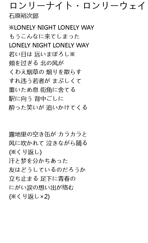 | 歌曲 | ロンリーナイト・ロンリーウェイ |