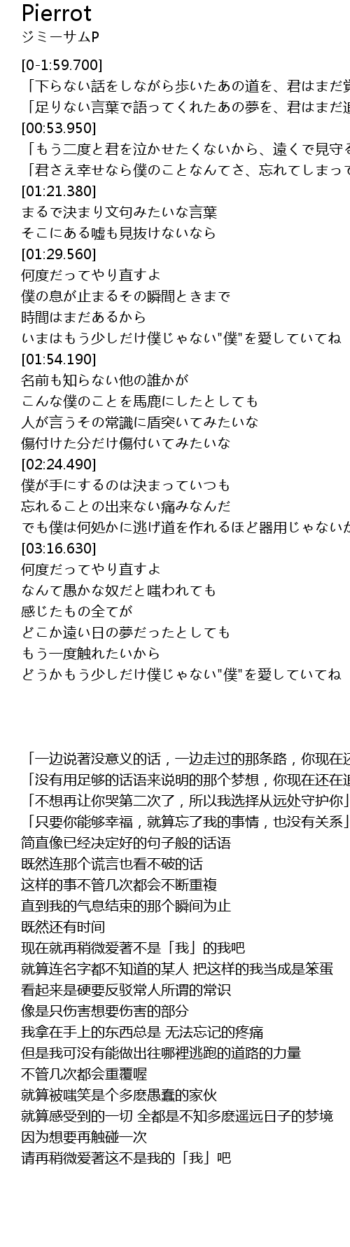 | [03:41.940] | どうかもう少しだけ僕じゃない"僕"を愛していてね |