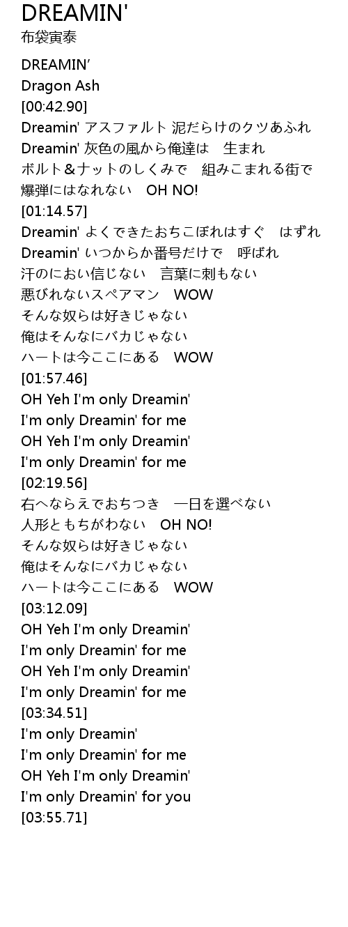 | [00:43.82] | Dreamin' ni |