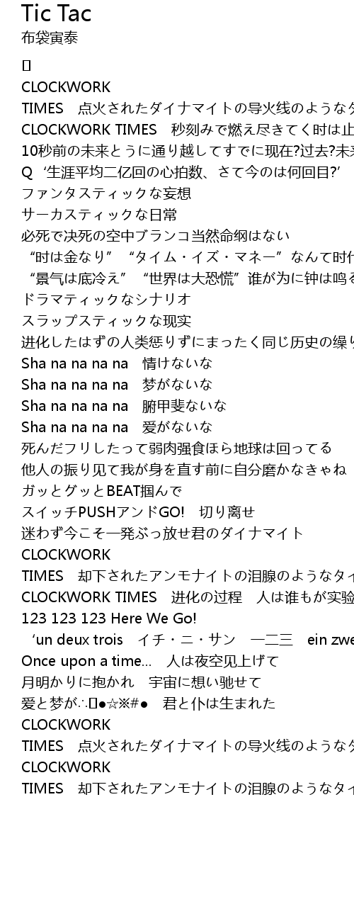 | CLOCKWORK TIMES miǎo kè rán jǐn shí zhǐ | |