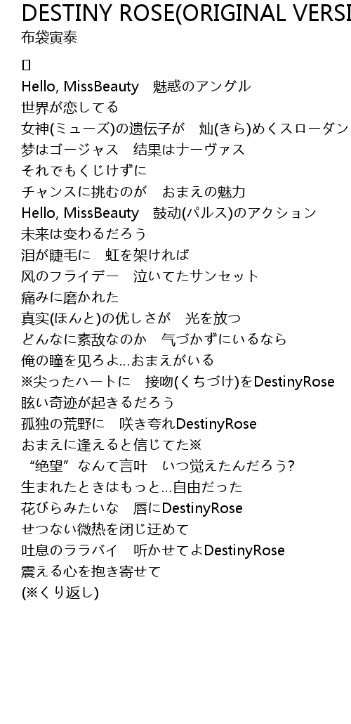 | 歌曲 | DESTINY ROSE(ORIGINAL VERSION) |