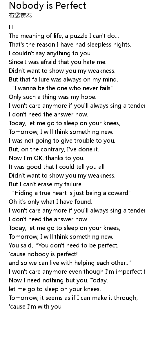 | 歌曲 | Nobody is Perfect |