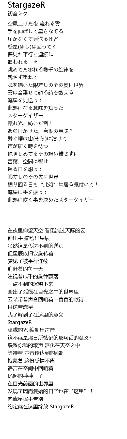| 歌曲 | StargazeR |